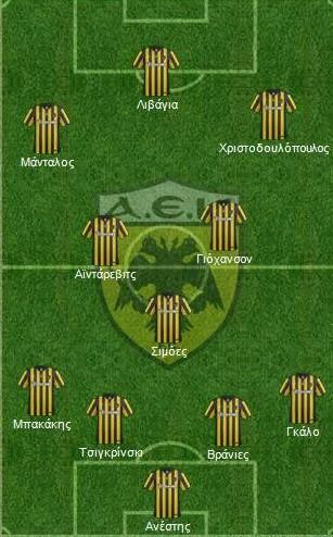 Στα χαφ οι δύο Σουηδοί (Αϊντάρεβιτς, Γιόχανσον) μαζί με τον Σιμόες και τριάδα στην επίθεση Μάνταλος, Χριστοδουλόπουλος και Λιβάγια.