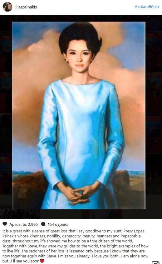 Δύσκολες ώρες περνάει ο Ηλίας Ψινάκης, καθώς έφυγε από τη ζωή η αγαπημένη του θεία, Presy Lopez Psinakis.