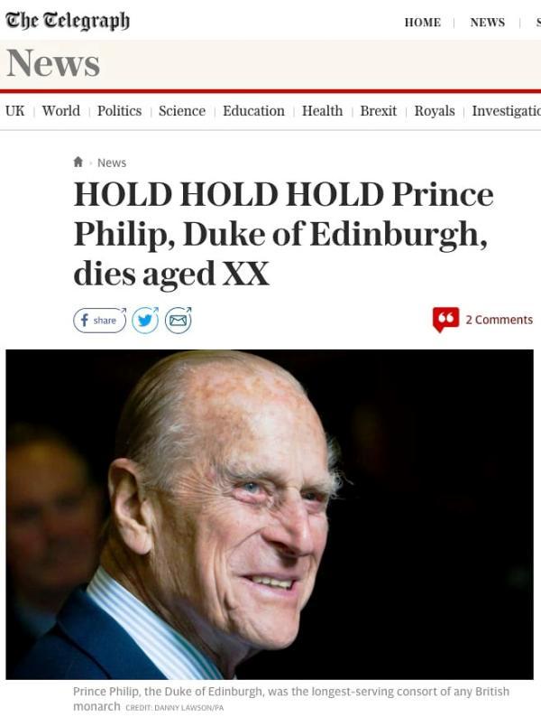 Το λάθος έγινε από την Daily Telegraph, η οποία ανέβασε ανάρτηση με την οποία… πέθανε καταλάθος τον πρίγκιπα Φίλιππο, σύζυγο της βασίλισσας Ελισάβετ.
