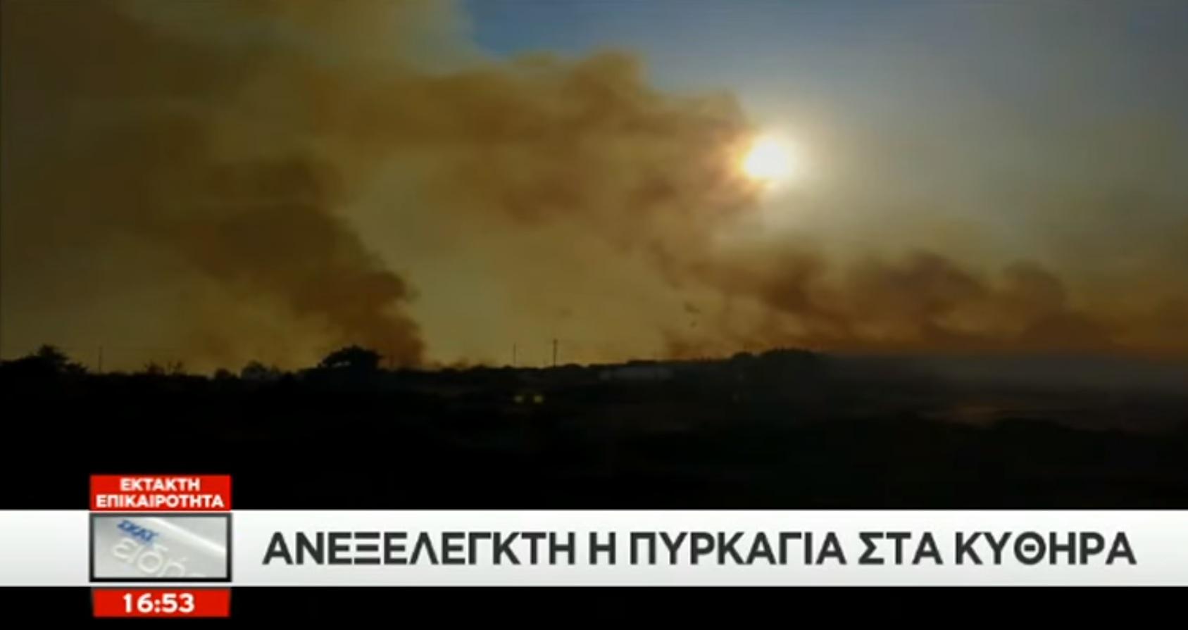 Άλλη μια εφιαλτική νύχτα ζουν οι κάτοικοι των Κυθήρων με την πυρκαγιά να καίει τα πάντα στο διάβα της.