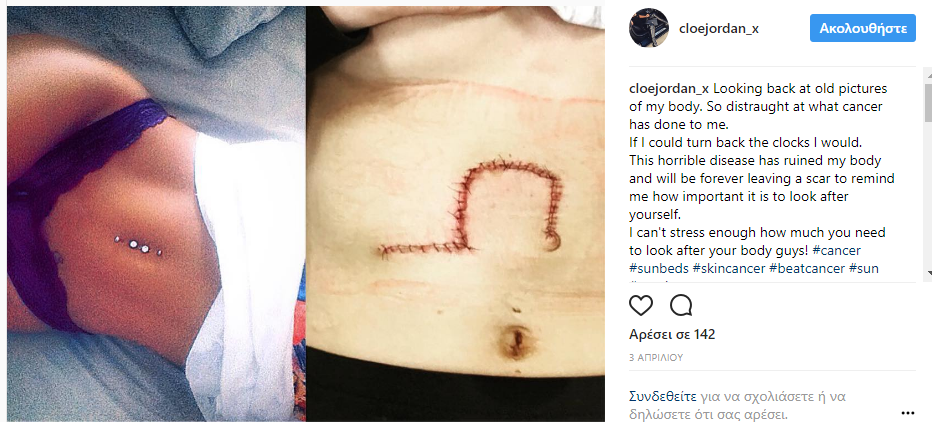 Η Cloe υποβλήθηκε σε χειρουργική επέμβαση για να αφαιρέσει το μελάνωμα και δημοσίευσε τις φωτογραφίες του «πριν» και του «μετά» για να ευαισθητοποιήσει κι άλλους που μπορεί να έχουν το ίδιο πρόβλημα.