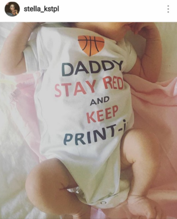 Στέλλα δημοσίευσε, μάλιστα, την πρώτη φωτογραφία της μπέμπας τους φορώντας της ένα άκρως χιουμοριστικό φορμάκι το οποίο έγραφε: «Μπαμπά μείνε κόκκινος», παραπέμποντας τον μπαμπά Πρίντεζη να μείνει στον Ολυμπιακό.