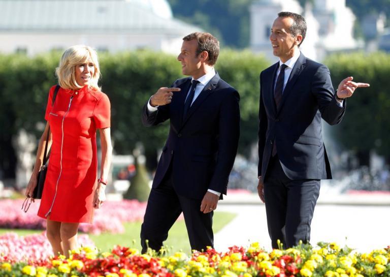 Με κόκκινο φόρεμα εμφανίστηκε η Μπριζίτ Τρονιέ στο πλευρό του Εμμανουέλ Μακρόν, στην επίσκεψη στην Αυστρία. Η Πρώτη Κυρία της Γαλλίας, όπως ήταν λογικό, έκλεψε την παράσταση, ενώ λίγο αργότερα το προεδρικό ζεύγος συναντήθηκε με τον καγκελάριο της Αυστρίας, Κρίστιαν Κερν.