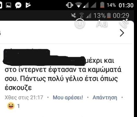 » Β. Στο ίντερνετ έφτασαν τα καμώματά σου .πάντως πολύ γέλιο έτσι που έσκουζε η γάτα «