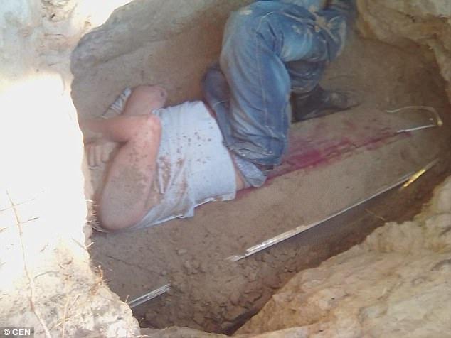 Σε εικόνες που κυκλοφόρησαν στο διαδίκτυο, ο άνδρας είναι ξαπλωμένος πάνω στο φέρετρο. Ο 30χρονος ήθελε να σκάψει τον τάφο για να κάψει τα λείψανα της κοπέλας, ώστε να απελευθερωθεί από τους εφιάλτες που έβλεπε καθημερινά γύρω από το πρόσωπό της.