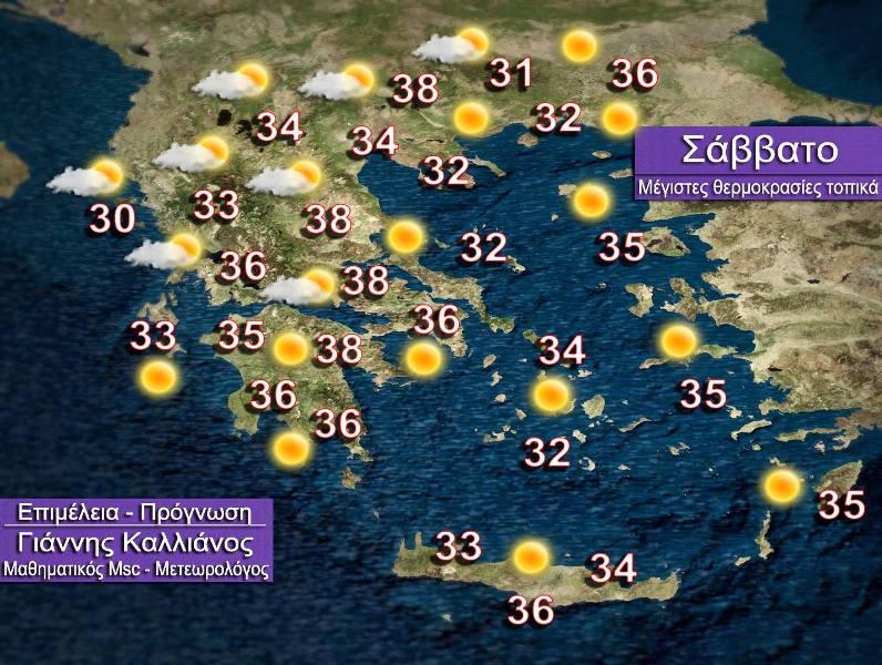 Σας παρουσιάζω με ιδιαίτερη λεπτομέρεια, τους χάρτες πρόγνωσης μεγίστων θερμοκρασιακών τιμών σε τοπικό επίπεδο αλλά και των φαινομένων κατά τη διάρκεια του προσεχούς Σαββατοκύριακου.