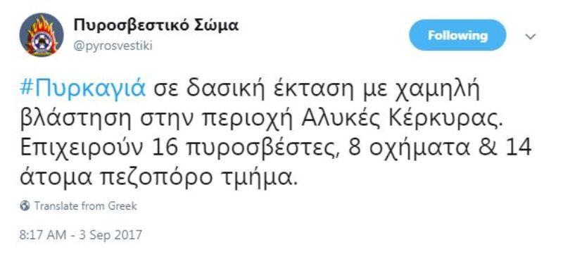 Σε εξέλιξη βρίσκεται η δασική πυρκαγιά που εκδηλώθηκε, νωρίς το πρωί, στην περιοχή Αλυκές στην Κέρκυρα.