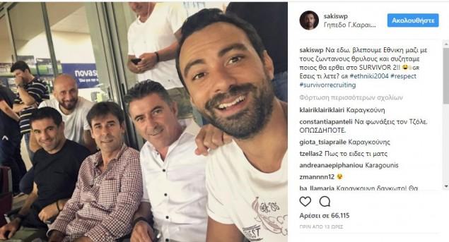 Ο Σάκης Τανιμανίδης παρακολούθησε την αναμέτρηση της εθνικής ομάδας με το Βέλγιο παρέα με κάποιους από τους πρωταθλητές Ευρώπης του 2004 και προσπάθησε να τους πείσει να πάνε στο «Survivor 2»!