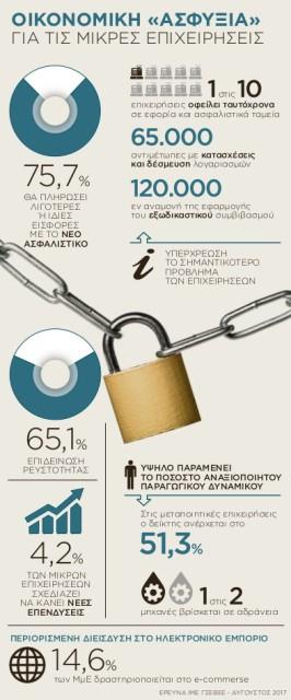 – Σταθερά υψηλό (23,8%) παραμένει το ποσοστό των επιχειρήσεων που δηλώνει ότι έχει ληξιπρόθεσμες οφειλές προς την εφορία, παρά τις διάφορες ρυθμίσεις που έχουν εισαχθεί. Εύρημα που συμβαδίζει με το συνολικό ύψος των ληξιπρόθεσμων οφειλών που προστέθηκε μέσα στο 2017, οι οποίες ανήλθαν στα 5,47 δισ. ευρώ (στοιχεία Ανεξάρτητης Αρχής Δημοσίων Εσόδων). Μάλιστα, περίπου 65.000 μικρές επιχειρήσεις δηλώνουν ότι έχουν βρεθεί αντιμέτωπες το προηγούμενο εξάμηνο με κατάσχεση/ή δέσμευση λογαριασμών για οφειλές.
