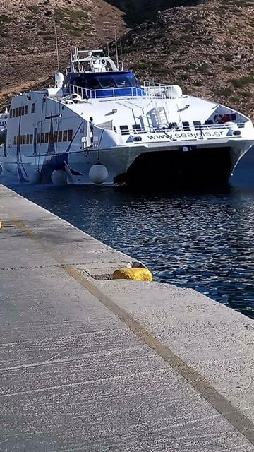 Περιπέτεια για τους 194 επιβάτες του SeaJet 2 όταν το ταχύπλοο επιβατηγό πλοίο προσέκρουσε στην προβλήτα στο λιμάνι της Σίφνου, κατά τη διάρκεια χειρισμών πρόσδεσης του ταχύπλοου.