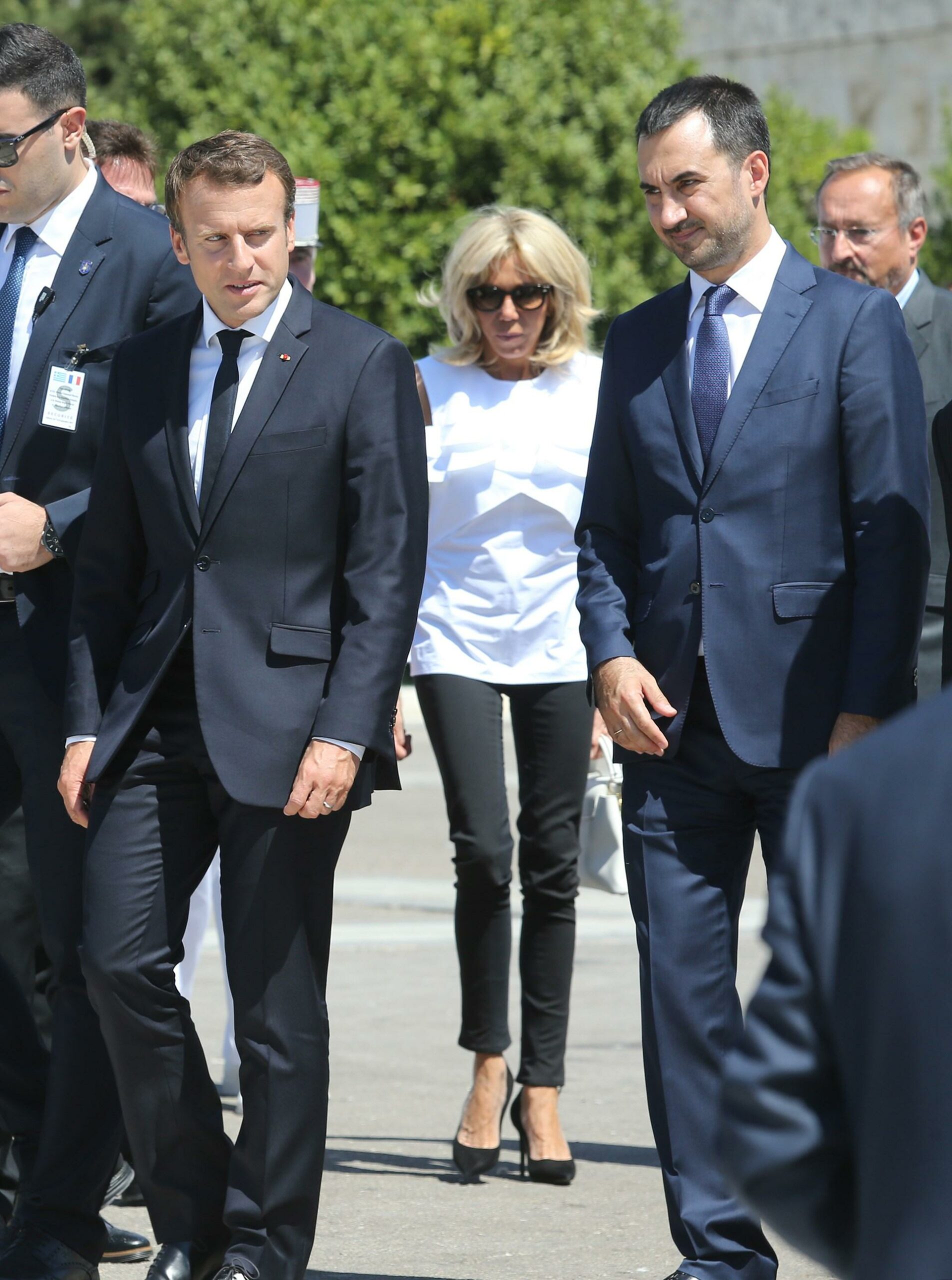 Μάλιστα, συνδύασε το ντύσιμό της με κομψές μαύρες γόβες, ενώ κρατούσε μια λευκή τσάντα. Λίγο πριν επισκεφθεί τον Ιερό Βράχο στην Ακρόπολη, η Πρώτη Κυρία της Γαλλίας άλλαξε παπούτσια και φόρεσε ψηλές μαύρες πλατφόρμες για να αισθάνεται πιο άνετη.