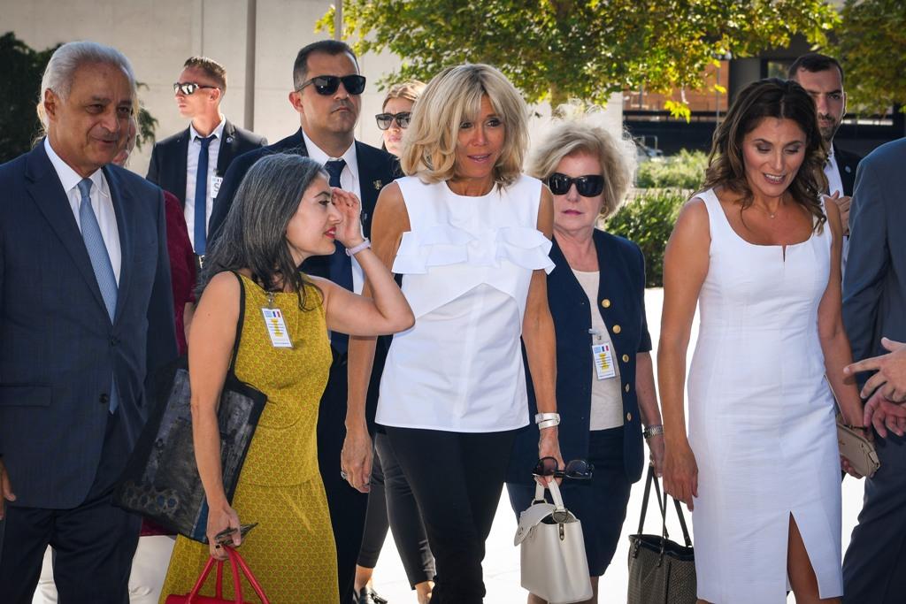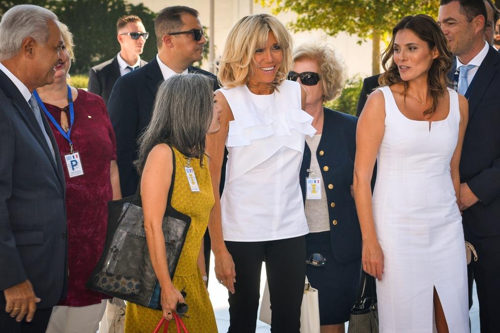 «Είναι η πρώτη μου επίσημη επίσκεψη στη χώρα σας και έχει τη σημασία του αυτό. Είναι πολύ μεγάλη χαρά που είμαι εδώ και για την υποδοχή» είπε η κ. Μακρόν δείχνοντας την σύζυγο του Έλληνα πρωθυπουργού Μπέτυ Μπαζιάνα.