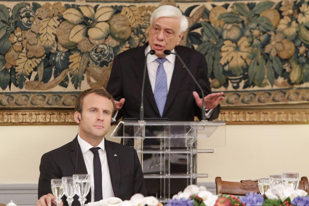 Ο Γάλλος Πρόεδρος στην αντιφώνηση του προς τον Πρόεδρο της Δημοκρατίας στο επίσημο δείπνο προς τιμήν του τόνισε πως πρέπει να είμαστε απαιτητικοί για την Ελλάδα και την Ευρώπη και εξέφρασε την συμφωνία του με πολλές από τις επισημάνσεις του κ. Παυλόπουλου.