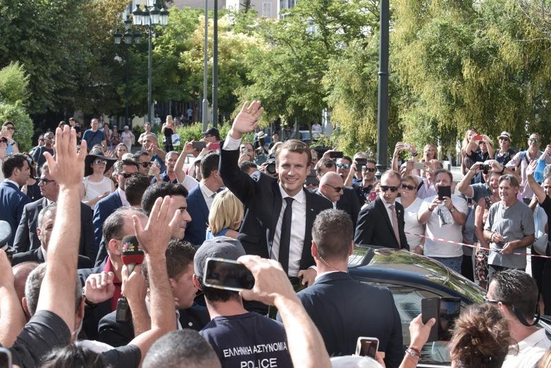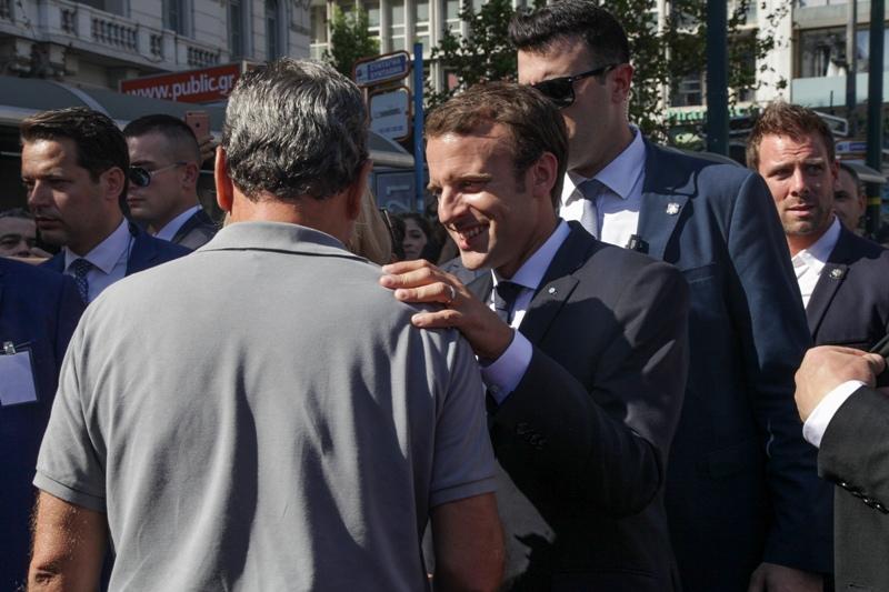 Ο Εμανουέλ και η Μπριζίτ Μακρόν κατευθύνθηκαν με τα πόδια στην οδό Ερμού, συνοδευόμενοι, φυσικά, από άνδρες της ασφαλείας του Γάλλου προέδρου, όπου και έγινε χαμός.