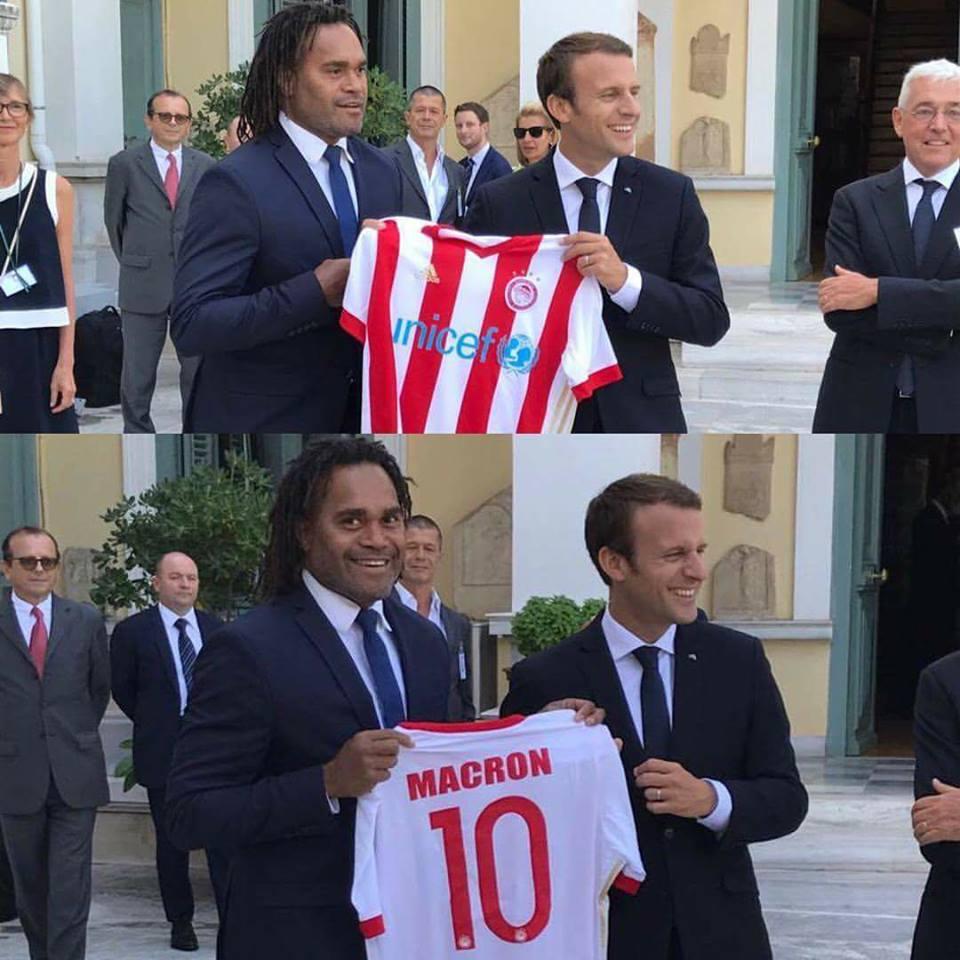 Ένα μπλουζάκι του Ολυμπιακού με το νούμερο 10 και το όνομά του έδωσε στον Γάλλο πρόεδρο, Εμανουέλ Μακρόν, ο Κριστιάν Καρεμπέ, Σύμβουλος Στρατηγικής της Διοίκησης της ερυθρόλευκης ΠΑΕ, κατά τη διάρκεια της επίσκεψης του πρώτου στην Γαλλική Αρχαιολογική Σχολή ο Γάλλος πρόεδρος.