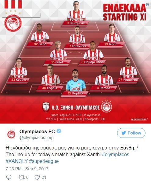 Με τους Ένχελς και Τζούρτζεβιτς να κάνουν το ντεμπούτο τους στην Ξάνθη θα παραταχθεί ο Ολυμπιακός στην αναμέτρηση της τρίτης αγωνιστικής της Σούπερ Λίγκας.