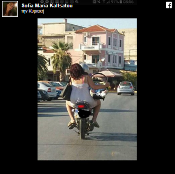 Σάλο έχει προκαλέσει στα κοινωνικά δίκτυα η δημοσιοποίηση μίας φωτογραφίας στην οποία ένας άντρας οδηγεί ένα μηχανάκι και από πίσω του μία γυναίκα κρατά στο πλάι ένα παιδικό καθισματάκι μέσα στο οποίο μάλιστα βρίσκεται ένα μωρό πιθανότατα νεογέννητο.