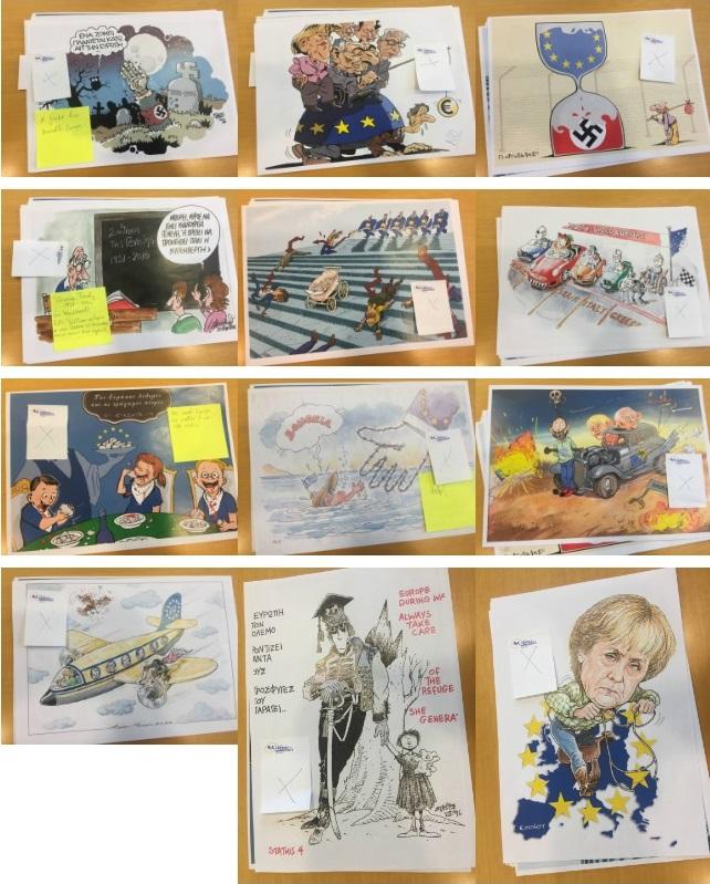 Όπως ορίζεται από τον κανονισμό του ευρωκοινοβουλίου, το περιεχόμενο κάθε έκθεσης πρέπει να αξιολογείται προκειμένου να ελεγχθεί ότι δεν περιλαμβάνει φιλοναζιστικό ή άλλο προσβλητικό περιεχόμενο. Όμως εν προκειμένω, η κοσμήτορας, Catherine Bearder, απέρριψε 12 από τα 28 σκίτσα Ελλήνων γελοιογράφων, χωρίς αυτά να προσβάλλουν με κάποιο τρόπο τις αξίες της ΕΕ.