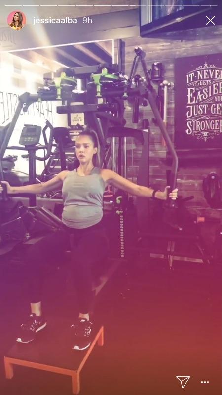 Η Jessica Alba έκανε βάρη και κοιλιακούς, μεταξύ άλλων ασκήσεων. Η ηθοποιός αν και γυμνάζεται αρκετά παραδέχτηκε ότι αυτό που παίζει σημαντικότερο ρόλο αυτή την περίοδο είναι το τι τρώει και όχι το πόσο γυμνάζεται.