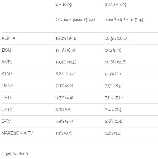 Οι αυξομειώσεις εντοπίζονται στην τηλεθέαση των δύο κρατικών καναλιών και του E-TV και αιτία είναι τα αθλητικά και τα ριάλιτι αντίστοιχα.