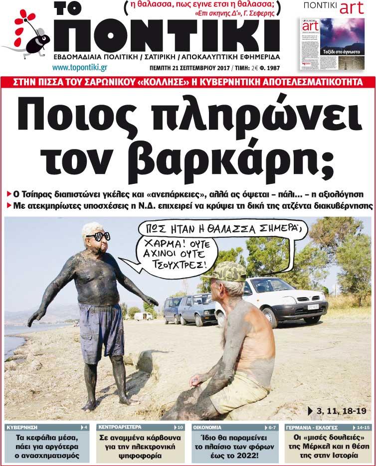 Με πρωτοσέλιδο τίτλο «Ποιος πληρώνει τον βαρκάρη;» και αναλυτικό-αποκαλυπτικό ρεπορτάζ για την πίσσα στον Σαρωνικό, την αξιολόγηση και την ατζέντα διακυβέρνησης της ΝΔ.