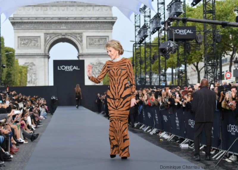 Η 79χρονη ηθοποιός περπάτησε για λογαριασμό της L’Oreal μαζί με τις άλλες πρέσβειρες της εταιρείας, την 34χρονη τραγουδίστρια Σέριλ Κόουλ και το 32χρονο μοντέλο Ντάουτσεν Κρους.