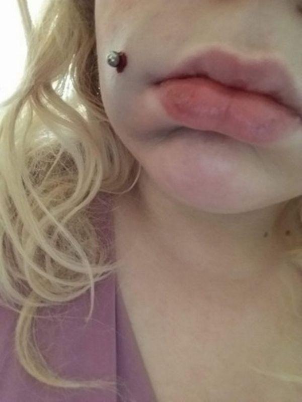 Ταυτόχρονα, το λάθος στο piercing προκάλεσε οίδημα με το πρόσωπο της νεαρής γυναίκας να πρήζεται «σαν μπαλόνι», ενώ η ίδια ομολόγησε ότι κατάλαβε ότι κάτι δεν πήγαινε καλά από την πρώτη στιγμή, καθώς το piercing της προκάλεσε αμέσως μεγάλο πόνο.