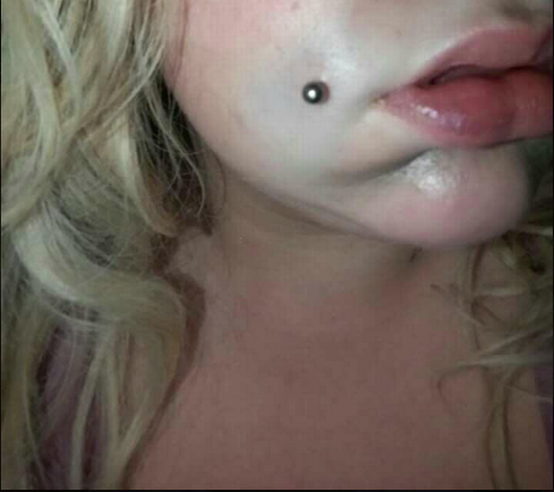 Τα προβλήματα άρχισαν όταν η κοπέλα έκανε τρύπες στα δύο μάγουλά της, προκειμένου να βάλει σκουλαρίκια. Ωστόσο, το ένα τρύπημα άρχισε από την πρώτη στιγμή να αιμορραγεί, γεμίζοντας το στόμα της κοπέλας με αίμα, όπως φαίνεται και στην φωτογραφία.