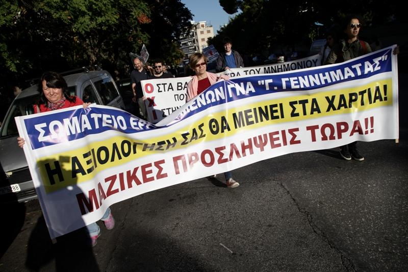Με συνθήματα κατά της κυβέρνησης και το «άρμα του Μαυρογιαλούρου πρωθυπουργού» πραγματοποίησαν πορεία μέσω των οδών Βασ. Σοφίας, Πανεπιστημίου και κατέληξαν στο υπουργείο Υγείας. Στο ύψος του Μεγάρου Μαξίμου οι εργαζόμενοι, έσκισαν και έκαψαν φύλλα αξιολόγησης, ενώ μικροένταση επικράτησε έξω από την Βουλή όταν εκπρόσωποι της ΠΟΕΔΗΝ επιχείρησαν να αναρτήσουν πανό και απωθήθηκαν από αστυνομικούς.