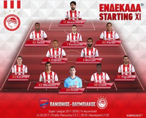 Αυτή είναι η ενδεκάδα του Ολυμπιακού για το εκτός έδρας με τον Πανιώνιο για την 7η αγωνιστική της Super League.