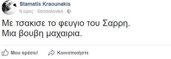 Τη θλίψη του για τον θάνατο του αδελφού της Χαρούλας Αλεξίου, τραγουδιστή Γιώργου Σαρρή, εξέφρασε μέσω Facebook ο Σταμάτης Κραουνάκης.
