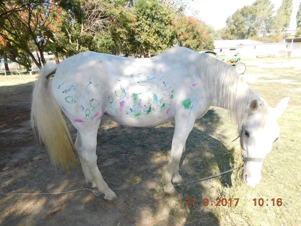 Μηνύσεις για το περιστατικό όπου εκπαιδευτικοί παιδικού σταθμού ζήτησαν από τα παιδιά, στο πλαίσιο προγράμματος, να ζωγραφίσουν πάνω σε ένα άλογο, κατέθεσαν στο Αστυνομικό Τμήμα Καλαμαριάς η Κατερίνα Τσέρτου και ο Αβραάμ Αβραχαμς, μέλη της ομάδας κατά των κακοποιήσεων ζώων “DREAMDANCERS”.