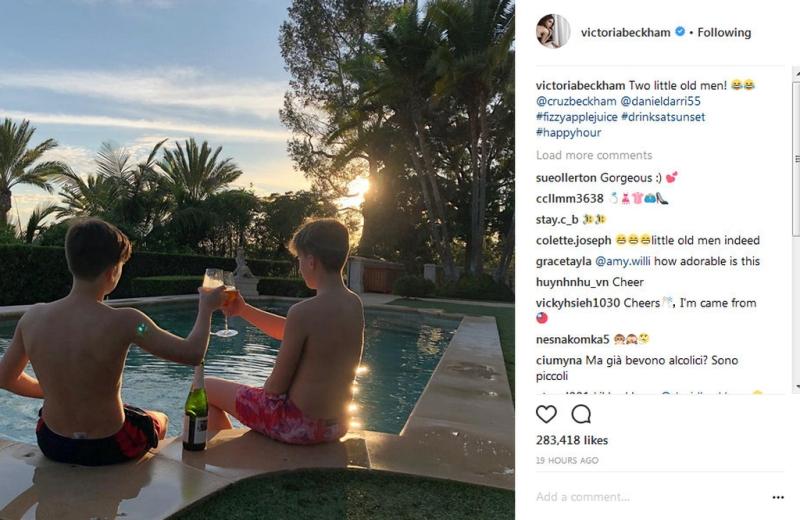 Στα σχόλια κάτω από την φωτογραφία έγινε χαμός. Κράζανε την Victoria Beckham που έδωσε αλκοόλ σε δυο ανήλικα πιτσιρίκια και της λέγανε ότι η φωτογραφία αυτή είναι απαράδεκτη.