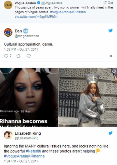 Αυτό, ωστόσο, προκάλεσε πλήθος αντιδράσεων καθώς πολλοί θεώρησαν ότι το concept της φωτογράφισης προσβάλλει τη βασίλισσα Νεφερτίτη, αποκαλώντας τη φωτογράφιση «πολιτιστικά ακατάλληλη» καθώς η Ριάνα δεν κατάγεται από την Αίγυπτο για να κάνει κάτι τέτοιο.