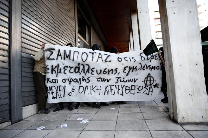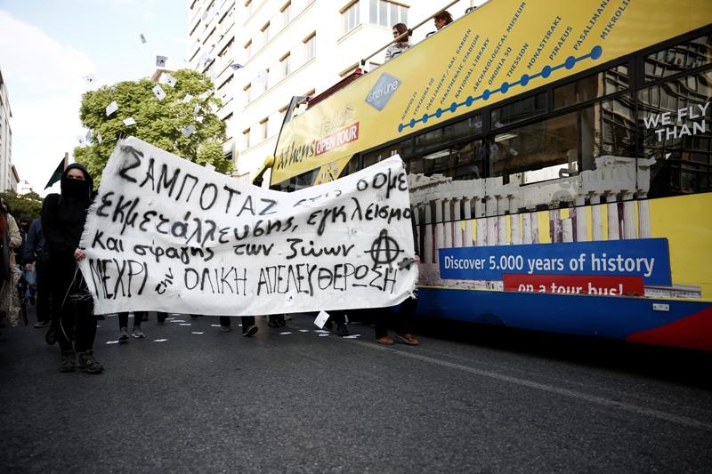 Πορεία στο κέντρο της Αθήνας πραγματοποίησε ομάδα 50 περίπου αντισπισιστών, το μεσημέρι του Σαββάτου.