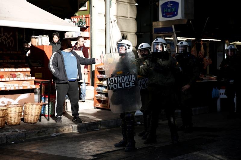 Στη συνέχεια κατευθύνθηκαν στην Βαρβάκειο αγορά όπου πέταξαν φυλλάδια.