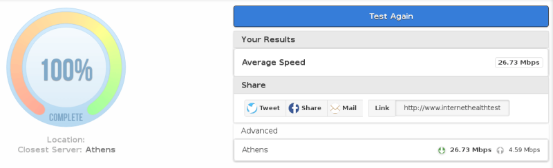Δείτε εδώ τα αποτελέσματα άλλης δοκιμής. Θα ήταν θαυμάσια αν η γραμμή ήταν στα 24Mbps. Δυστυχώς η γραμμή είναι στα 50Μbps.