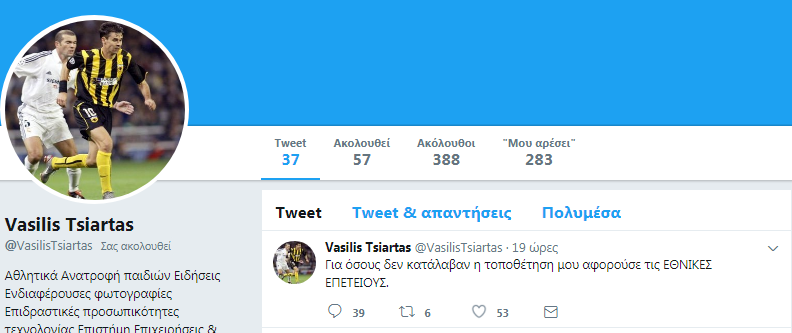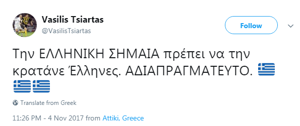 Διευκρινιστική δήλωση με την οποία αναφέρεται στις δηλώσεις του περί σημαίας, έκανε ο παλαίμαχος ποδοσφαιριστής Βασίλης Τσιάρτας.
