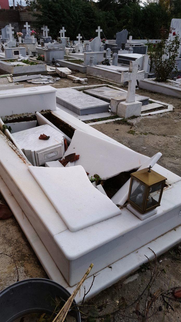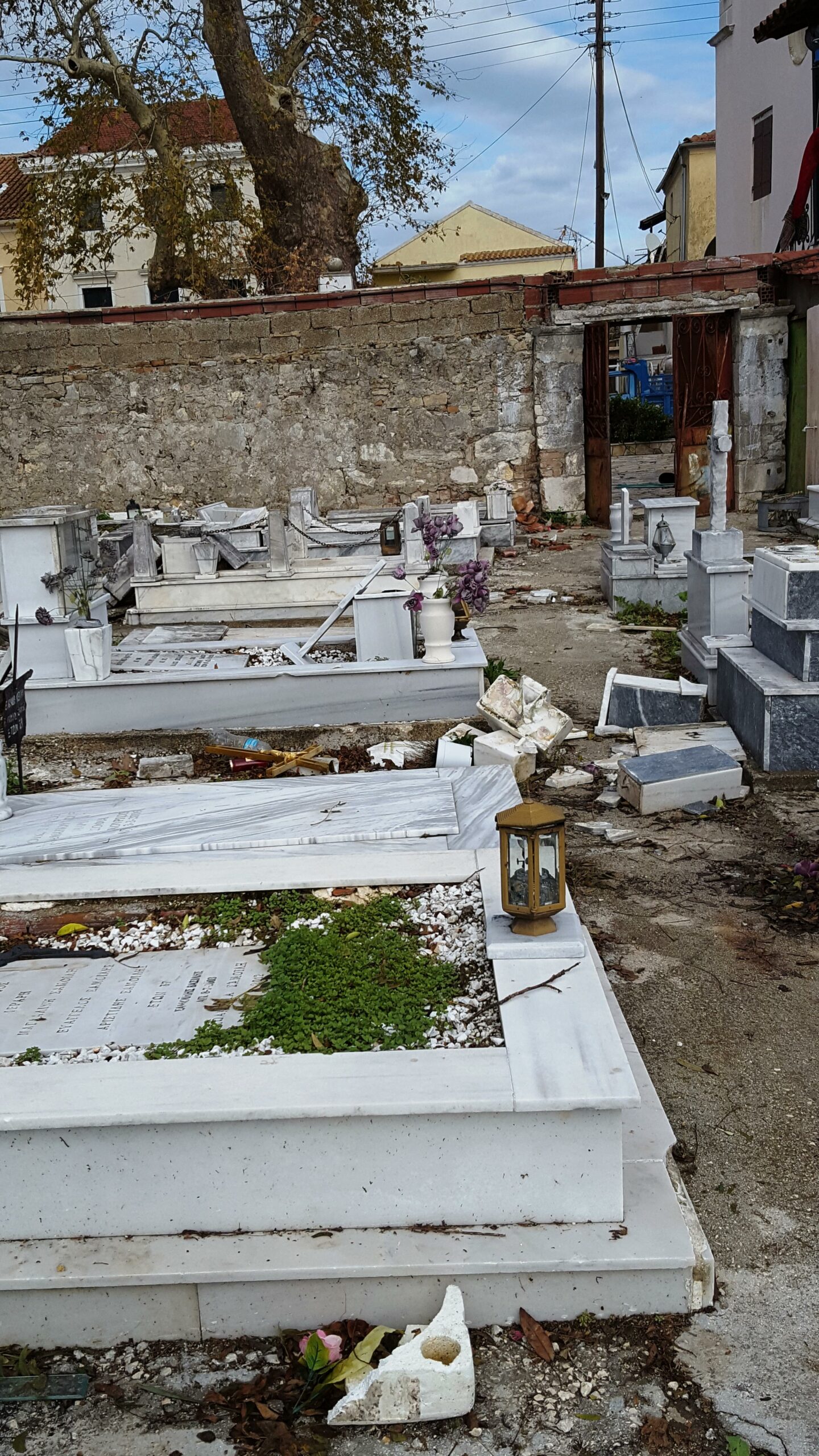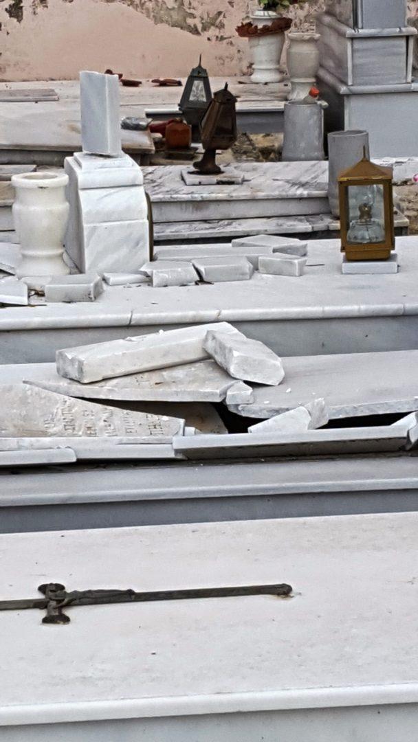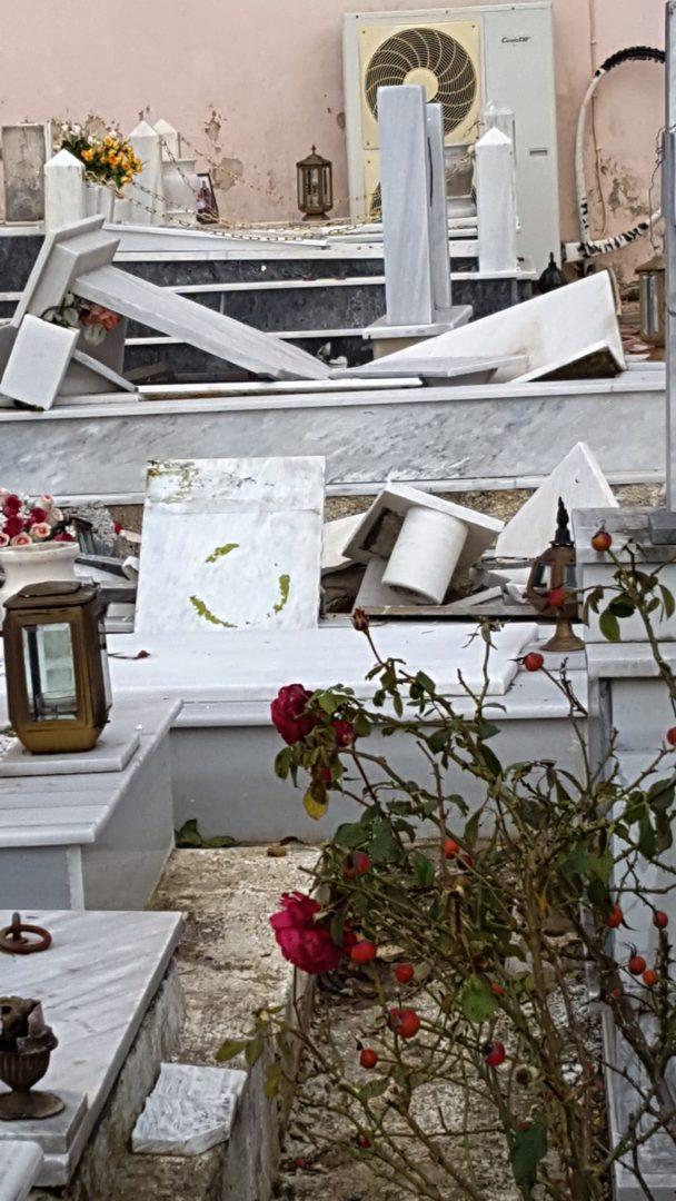 Σοβαρές ζημιές μέχρι και στο νεκροταφείο προκάλεσε ο ανεμοστρόβιλος, ο οποίος χτύπησε τη Λευκίμμη το βράδυ του περασμένου Σαββάτου.