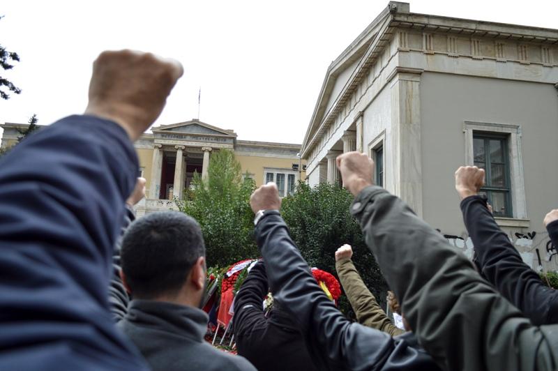 Συνεχίζονται οι εκδηλώσεις τιμής στο Πολυτεχνείο, με καταθέσεις στεφάνων και συγκεντρώσεις.