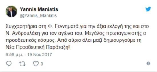 Τα συγχαρητήριά του εξέφρασε στη μεγάλη νικήτρια των εκλογών της Κεντροαριστεράς και ο Γιάννης Μανιάτης.