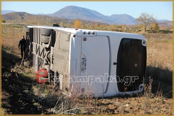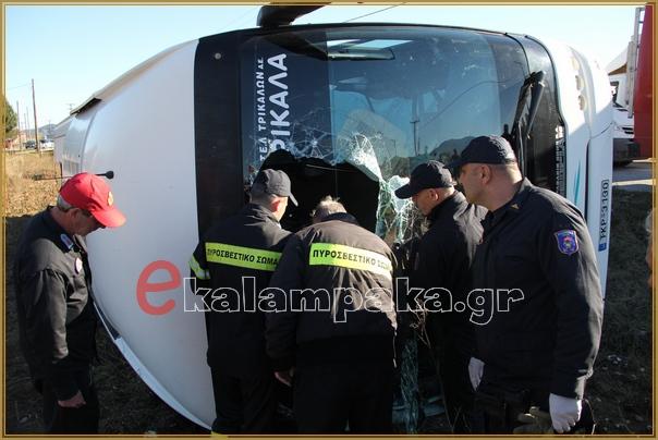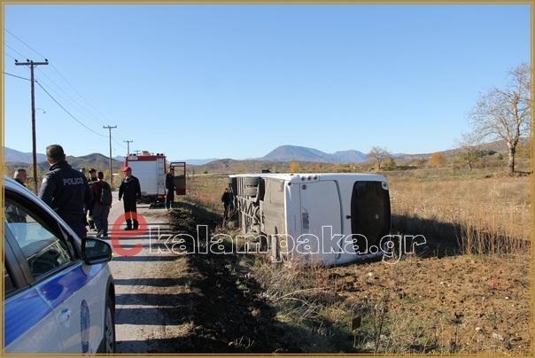 Σοβαρό τροχαίο στην Καλαμπάκα: Ανατροπή λεωφορείου ΚΤΕΛ που μετέφερε μαθητές (Photos)