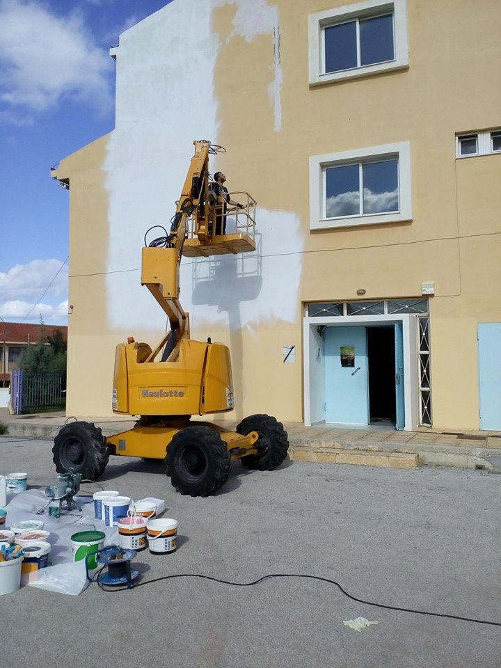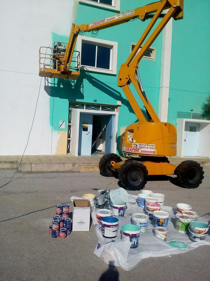 Ο Κυριάκος και ο Χρήστος από την ομάδα Urban Act, ήρθαν από την Αθήνα και «μεταμόρφωσαν» μέσα σε λίγες μέρες έναν από τους τοίχους του σχολείου.