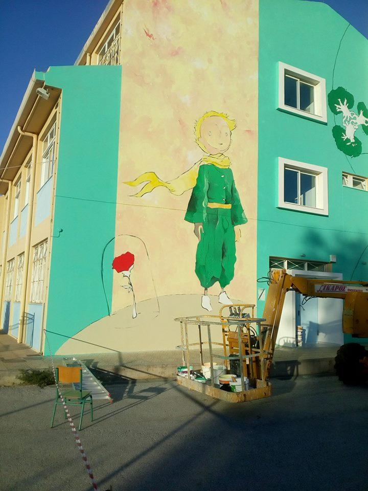 Άπλωσαν τα χρώματά τους, επιστράτευσαν έναν μικρό γερανό και ξεκίνησαν δουλειά. Βήμα – βήμα, μέρα την ημέρα ο Μικρός Πρίγκιπας έπαιρνε μορφή μπροστά στα μάτια των μαθητών, των δασκάλων, αλλά και της διευθύντριας του σχολείου, Μαρίας Κλιματσάκη. Ή δη από χθες ο Μικρός Πρίγκιπας έχει ολοκληρωθεί και έχει «φωτίσει» την καθημερινότητα των παιδιών με τα χρώματα αλλά και με τα μηνύματα του.