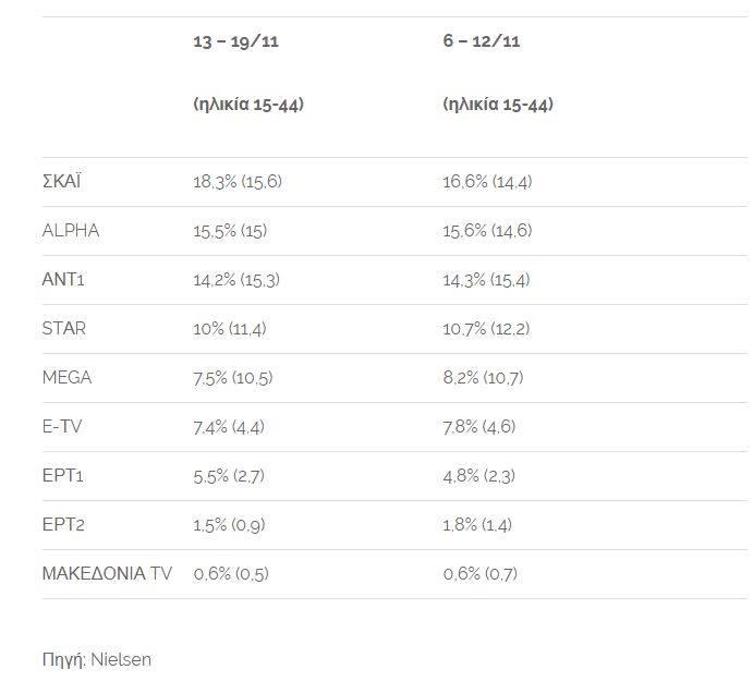 Καταγράφηκε, επίσης, μικρή πτώση για σχεδόν όλους τους άλλους τηλεοπτικούς σταθμούς.