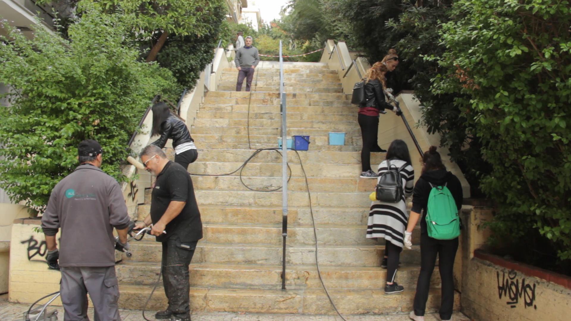 Στην οδό Σκουφά 34, δίπλα από το ιστορικό καφέ Φίλιον, η Kärcher σε συνεργασία με το συνΑθηνά του δήμου Αθηναίων, τον μη κερδοσκοπικό οργανισμό ethelon και το Ιδρυμα Σβάρτς (Schwarz Foundation), καθάρισε τα γκράφιτι και τους ρύπους από τους γύρω χώρους, με τα επαγγελματικά συστήματα καθαρισμού.