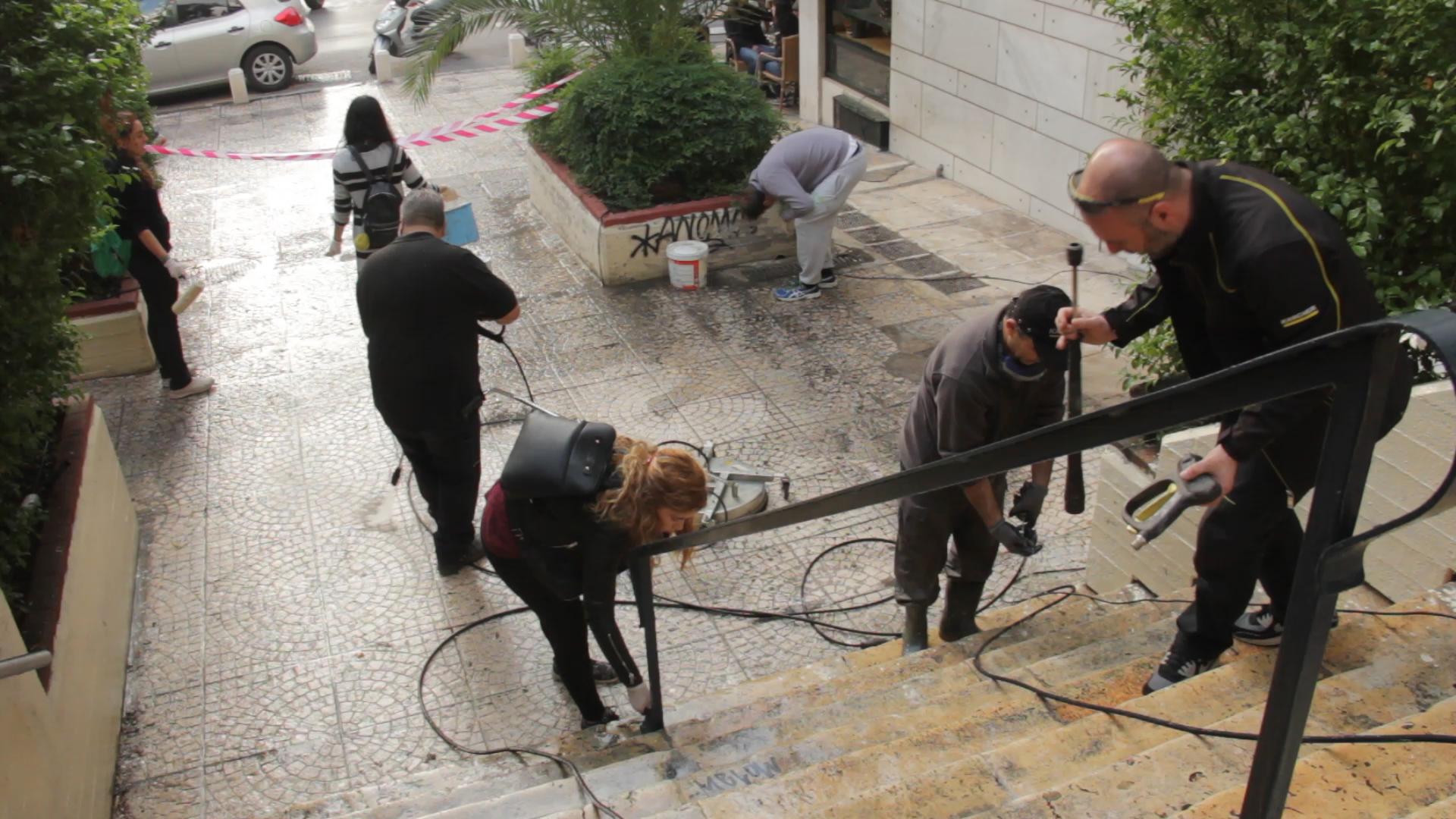 Με μεγάλη προθυμία οι εθελοντές και οι κάτοικοι της περιοχής, το μεσημέρι του Σαββάτου, ξεκίνησαν τον καθαρισμό των γειτονικών χώρων από μουτζούρες γκράφιτι και κάθε άλλη βρωμιά με τα σύγχρονα μηχανήματα, τον εξοπλισμό και την ενεργή καθοδήγηση της Kärcher. Ολοκλήρωσαν τον καθαρισμό με το πέρασμα ειδικού υλικού σε μορφή μπογιάς που θα αποτρέψει τη δημιουργία γκράφιτι στο μέλλον.