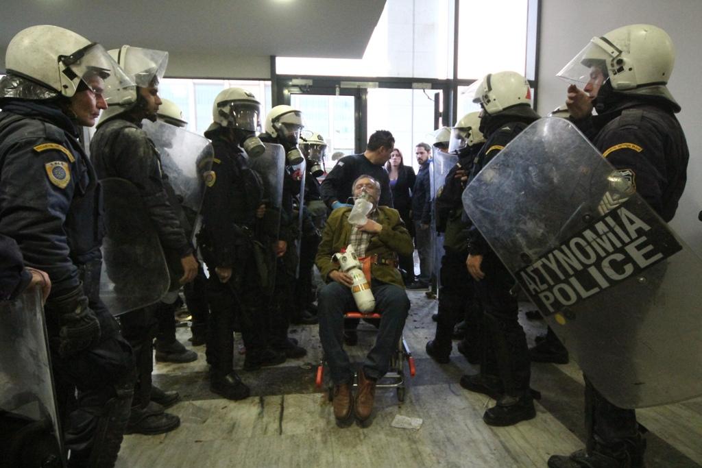 Κάποιοι από τους διαδηλωτές προχώρησαν σε καθιστική διαμαρτυρία, ενώ υπάρχουν αναφορές για τρεις τραυματίες. Σύμφωνα με πληροφορίες από στελέχη της ΛΑΕ, στο νοσοκομείο «Ευαγγελισμός» μεταφέρθηκε τραυματισμένος ο πρώην δήμαρχος Καισαριανής και στέλεχος του κόμματος Θάνασης Μπαρτζώκας.
