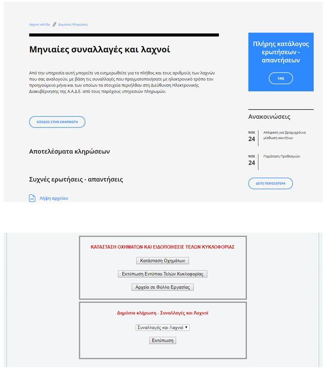 Οι φορολογούμενοι μπορούν να ενημερώνονται πριν από την εκάστοτε κλήρωση της φορολοταρίας, για τους λαχνούς που έχουν συγκεντρώσει (πλήθος και αριθμοσειρά) μέσω της διαθέσιμης εφαρμογής για πιστοποιημένους χρήστες στο δικτυακό τόπο της Α.Α.Δ.Ε. (www.aade.gr), στην επιλογή Δημόσιες κληρώσεις.