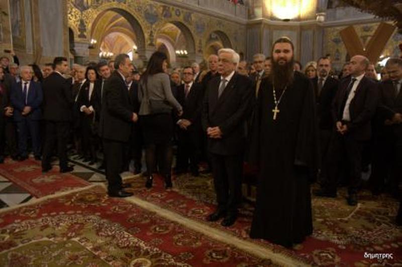 Ό ιερέας δεν δίστασε να ζητήσει ένα στιγμιότυπο με τον Πρόεδρο της Δημοκρατίας Προκόπη Παυλόπουλο, μέσα στον ναό, ενώ συνέχισε τις λήψεις με selfies και άλλες φωτογραφίες και εκτός του ναού.